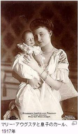 これは、ポツダム宮殿の中で撮った写真でしょうか? このときは、まだ、正式にドイツ帝室の妃として待遇されていたわけです。 ところが、ドイツで革命などがあり、路頭に迷うことになってしまったそうです。 結婚相手のヨアヒム王子は自殺してしまったそうです。 wikiの引用