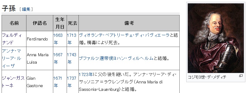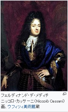 Ferdinando de' Medici 別のアメリカ人が言う(?)には、ルイ14世の皇太子(グラン・ドーファン)の親戚、ヴァロワ家(フランス王室の始祖の家系の一つだそうです)の血を引いているそうです。