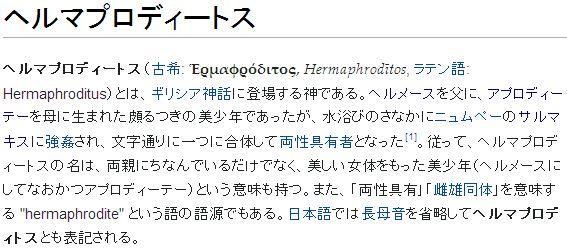 ヘルマプロディートスは美しい男性の代名詞になるほどの美貌の青年だったそうです。