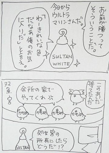 ↓これって 日本VS米国 の戦争の結果なのか? SULTANって検索したらいっぱいある。最後誰かが「紅茶が足りないわ」とか言う。「紅茶のにおいがいい」って言ってた。あと「夜とか月が好き」とか言ってた。自分は星なんだって。